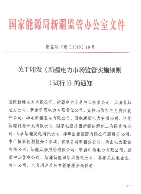 新疆電力市場監(jiān)管實施細(xì)則(試行)
