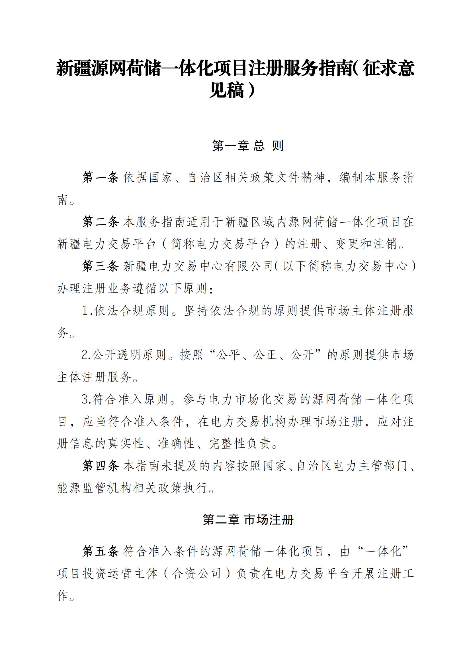 新疆源網(wǎng)荷儲一體化項目注冊服務指南意見征意見