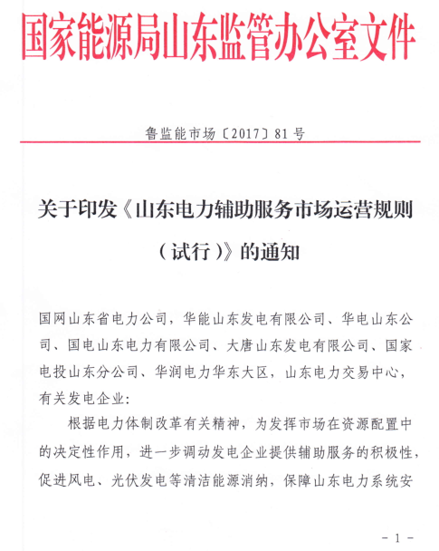 《山東電力輔助服務(wù)市場(chǎng)運(yùn)營(yíng)規(guī)則(試行)》印發(fā)