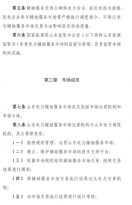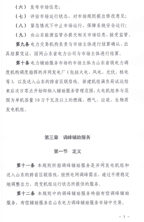 電力輔助服務(wù)市場(chǎng)的市場(chǎng)主體為山東省級(jí)電力調(diào)度機(jī)構(gòu)調(diào)度指揮的并網(wǎng)發(fā)電廠(包括火電、風(fēng)電、 光伏 、 核電等 ),以 及送入山東的跨省區(qū)聯(lián)絡(luò)線。新建機(jī)組滿負(fù)荷試運(yùn)結(jié)束后次日 零點(diǎn)開(kāi)始即納入輔助服務(wù)管理范圍 ,火電機(jī)組參與范圍為單機(jī)容量10萬(wàn)千瓦及以上的燃煤、燃?xì)?、垃圾、生物質(zhì)發(fā)電機(jī)組。