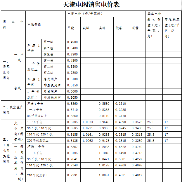 附件:天津電網(wǎng)銷(xiāo)售電價(jià)表