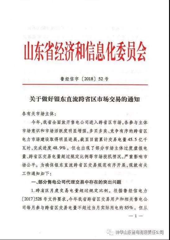 山東省經(jīng)濟(jì)和信息化委員會(huì)下發(fā)關(guān)于做好銀東直流跨省區(qū)市場(chǎng)交易的通知