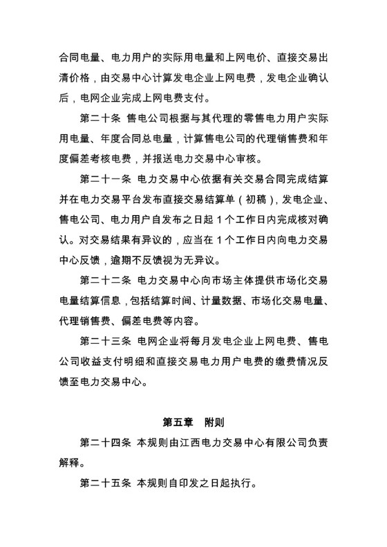 規(guī)則僅適用于2018年江西省內(nèi)電力用戶委托售電公司全電量參與電力直接交易和電力大用戶全電量直接參與電力直接交易,合同電量允許偏差±5%;電氣化鐵路部分電量參與直接交易,合同電量允許偏差-5%。