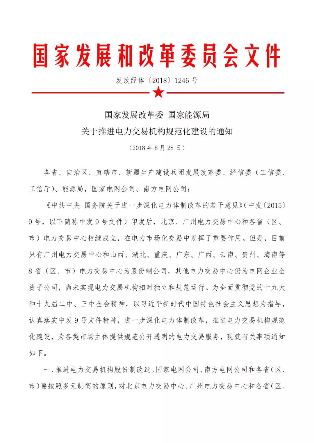 2018年8月28日,國家發(fā)展改革委 國家能源局發(fā)布了《關(guān)于推進(jìn)電力交易機(jī)構(gòu)規(guī)范化建設(shè)的通知》,正式推進(jìn)了電力交易機(jī)構(gòu)股份制改造。