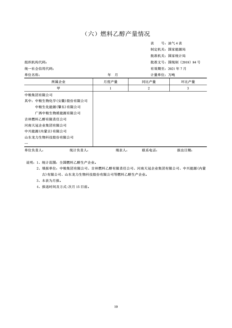 本調(diào)查制度涉及的調(diào)查對象為國家電網(wǎng)公司、南方電網(wǎng)公司、中國石油天然氣集團(tuán)公司、中國石油化工集團(tuán)公司、中國海洋石油總公司、中國化工集團(tuán)公司、中國中化集團(tuán)公司、中國兵器工業(yè)集團(tuán)公司、陜西延長石油(集團(tuán))有限公司、晉煤集團(tuán)、內(nèi)蒙古匯能煤化工公司、廣匯,以及中糧集團(tuán)有限公司等燃料乙醇生產(chǎn)企業(yè)。