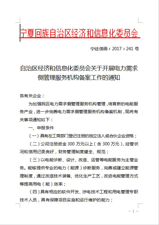寧夏:開展電力需求側管理服務機構備案工作通知發(fā)布