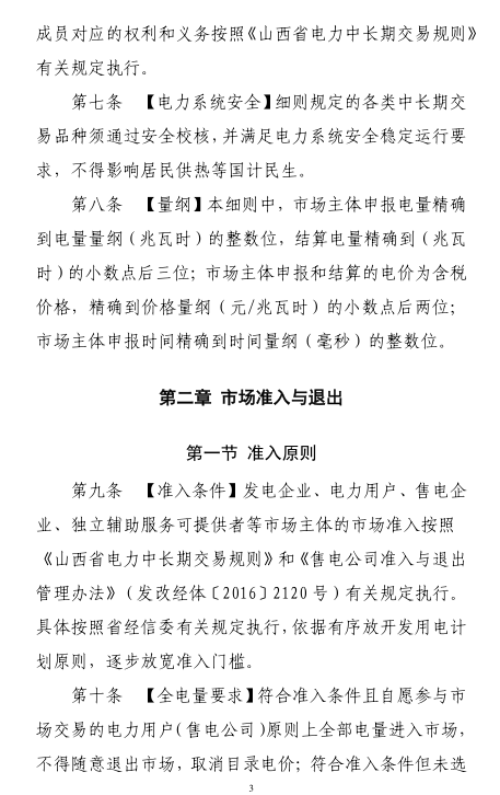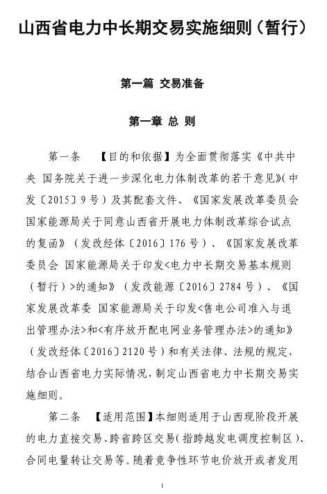 國(guó)家能源局山西監(jiān)管辦日前發(fā)布了關(guān)于征求《山西省電力中長(zhǎng)期交易實(shí)施細(xì)則(暫行)修改意見的函》,在這份長(zhǎng)達(dá)111頁(yè)的實(shí)施細(xì)則里,對(duì)交易準(zhǔn)備、交易實(shí)施均做出了詳盡的規(guī)定。值得注意的是,在這份細(xì)則里專門提到了