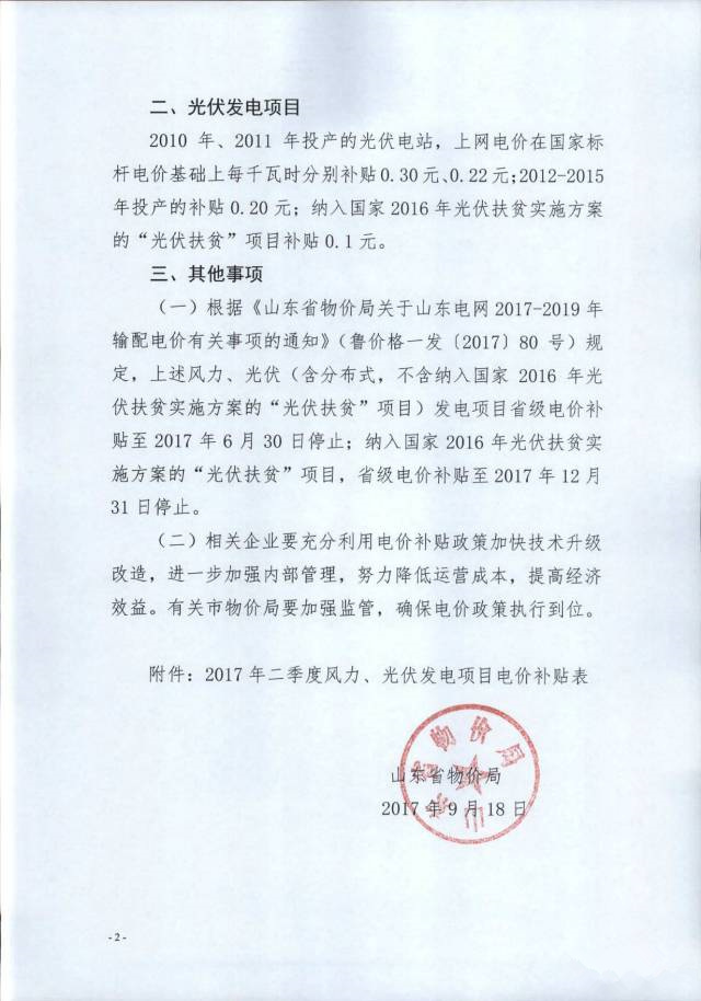山東2017年二季度風(fēng)力、光伏發(fā)電項目電價補貼
