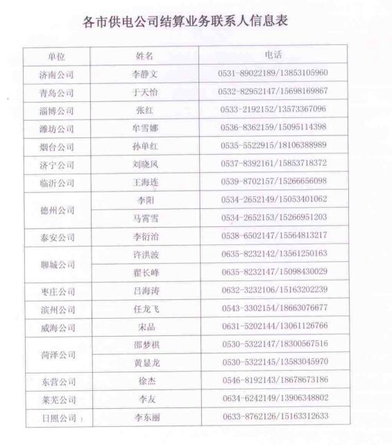 附件:各市供電公司結(jié)算業(yè)務(wù)聯(lián)系人信息表