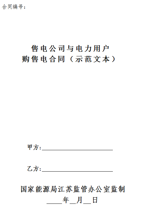 江蘇能源監(jiān)管辦印發(fā)兩個(gè)電力市場(chǎng)化交易合同示范文本