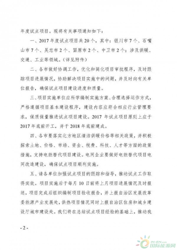 寧夏回族自治區(qū)發(fā)改委、住建部聯(lián)合發(fā)布關(guān)于《印發(fā)2017年電能替代試點(diǎn)項(xiàng)目的通知》