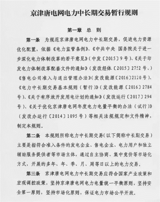 國家能源局發(fā)布了《京津唐電網(wǎng)電力中長期交易暫行規(guī)則》