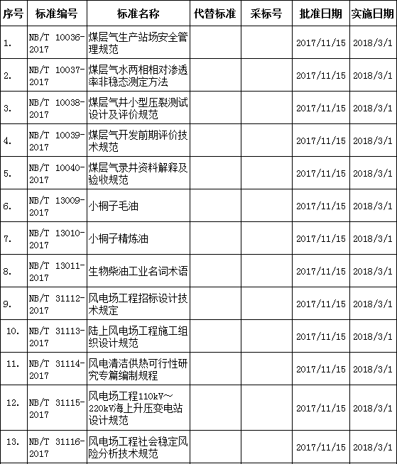 近日國家能源局批準了《煤層氣生產(chǎn)站場安全管理規(guī)范》等204項行業(yè)標準,其中涉及能源標準(NB)62項、電力標準(DL)86項、石油標準(SY)56項,詳情如下: