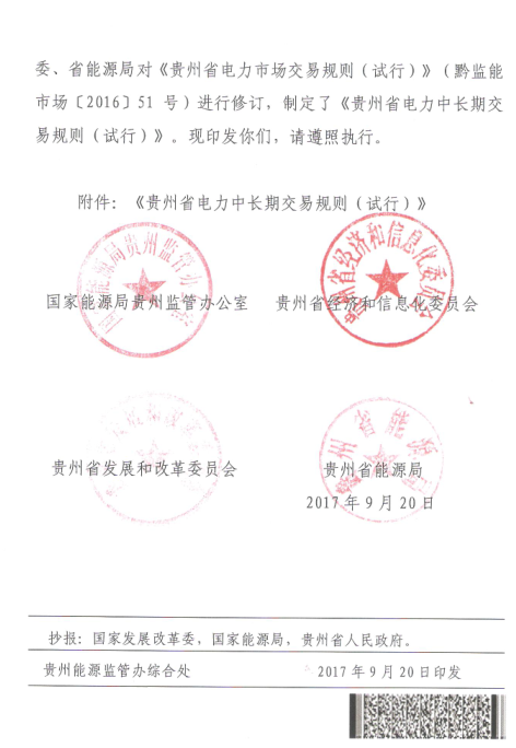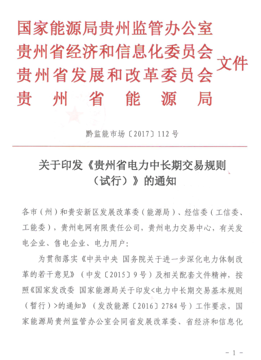 國家能源局貴州監(jiān)管局、貴州省經(jīng)信委、貴州省發(fā)改委、貴州省能源局日前聯(lián)合發(fā)布了《貴州省電力中長期交易規(guī)則(試行)》。