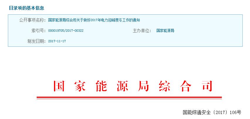 能源局:關于做好2017年電力迎峰度冬工作的通知