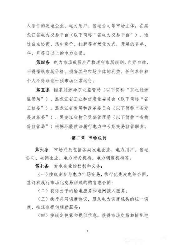 國家能源局東北監(jiān)管局、黑龍江省工信委、黑龍江省發(fā)改委、黑龍江省物價(jià)局日前聯(lián)合發(fā)布了《《黑龍江省電力中長期交易規(guī)則(暫行)的通知》,通知中稱,規(guī)則于2017年11月1日起施行。電力用戶的準(zhǔn)入條件為10千伏及以上
