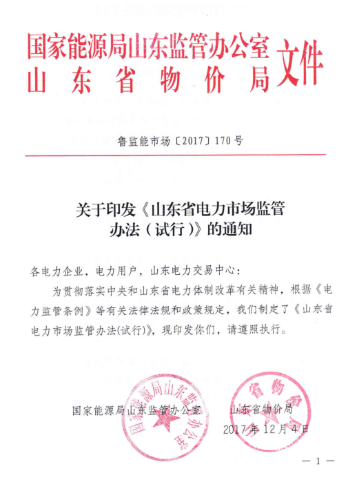國家能源局山東監(jiān)管辦、山東省物價(jià)局日前發(fā)布了《山東省電力市場監(jiān)管辦法(試行)》。辦法適用于山東省內(nèi)和涉及山東省的跨省跨區(qū)電力市場的監(jiān)管。
