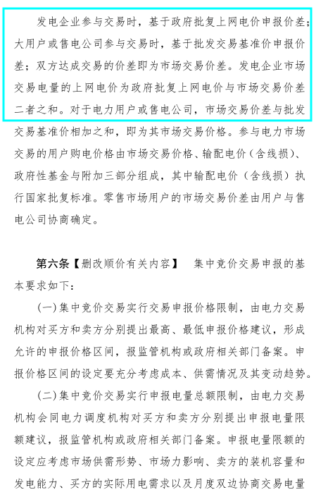 國家能源局湖南監(jiān)管辦日前下發(fā)了關(guān)于《湖南省電力中長期交易規(guī)則(試行))修改增補(bǔ)部分條款征求意見的函,這次較大的改動(dòng)新增批發(fā)交易基準(zhǔn)價(jià)這個(gè)調(diào)控因素,在參與交易時(shí),是基于批發(fā)交易基準(zhǔn)價(jià)進(jìn)行申報(bào)價(jià)差,對(duì)于發(fā)電企業(yè)市場(chǎng)化交易的上網(wǎng)電價(jià)結(jié)算價(jià)格就是以政府批復(fù)上網(wǎng)電價(jià)與市場(chǎng)交易價(jià)差之和為依據(jù),而對(duì)于電力用戶和售電公司來說,市場(chǎng)交易價(jià)差與批發(fā)交易基準(zhǔn)價(jià)相加之和就是市場(chǎng)交易價(jià)格。