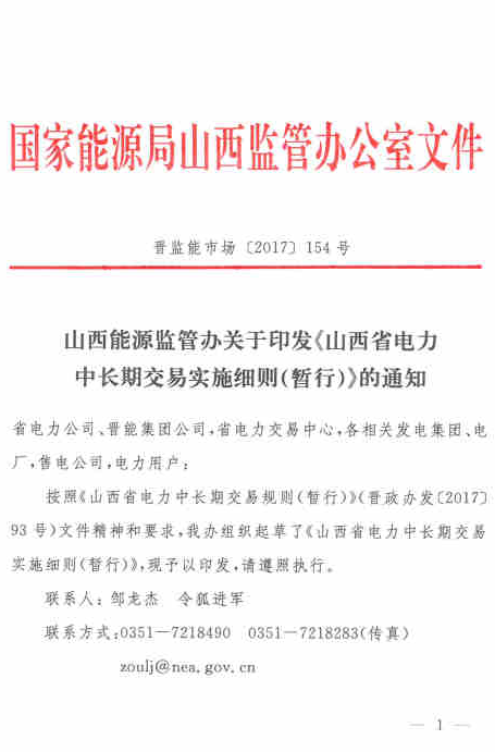 山西能源監(jiān)管辦日前印發(fā)了《山西省電力中長期交易實施細則(暫行)》。《細則》在此前印發(fā)的《山西省電力中長期交易規(guī)則(暫行)》基礎上,進一步進行了細化明確。