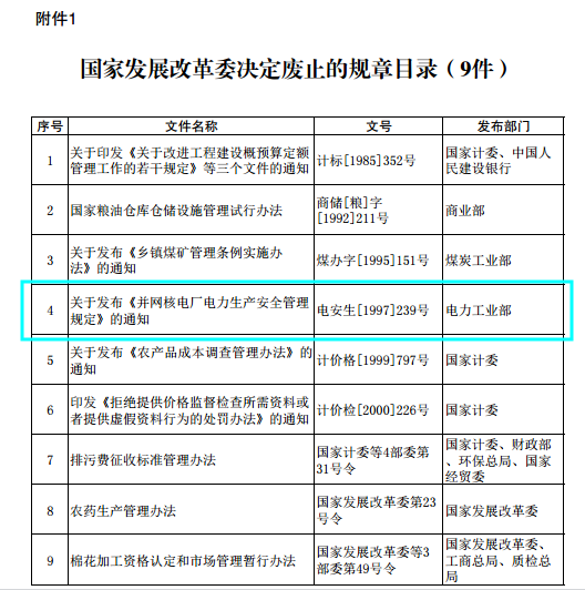 國家發(fā)改委關于廢止有關規(guī)章和規(guī)范性文件的決定發(fā)布:涉及電力行業(yè)13個