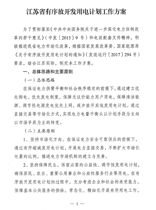 江蘇有序放開發(fā)用電計劃步驟分三步走: