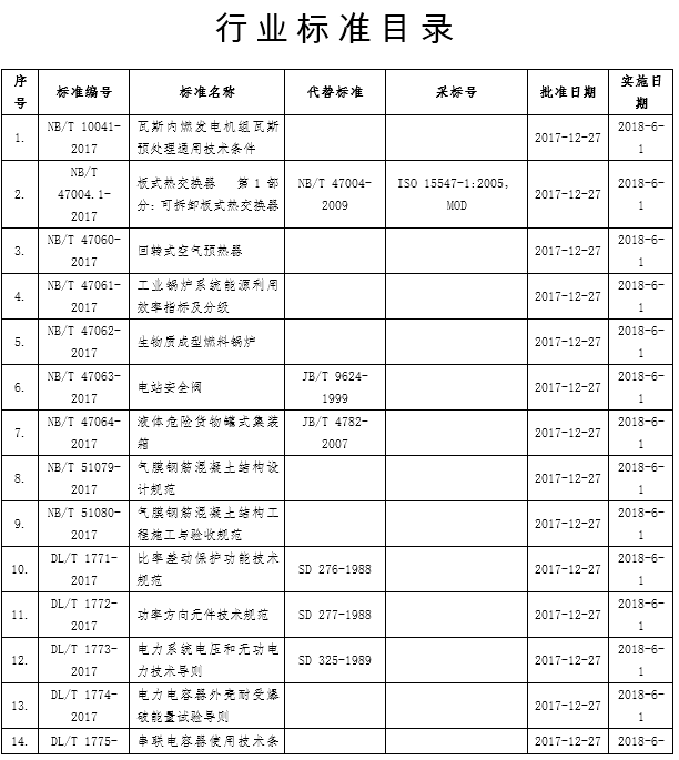 今日,國(guó)家能源局發(fā)布2017年第13號(hào)公告,批準(zhǔn)80項(xiàng)行業(yè)標(biāo)準(zhǔn),其中電力標(biāo)37項(xiàng),全文如下: