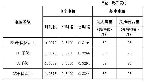 附件:315千伏安及以上商場(chǎng)用戶自主選擇執(zhí)行峰谷電價(jià)表