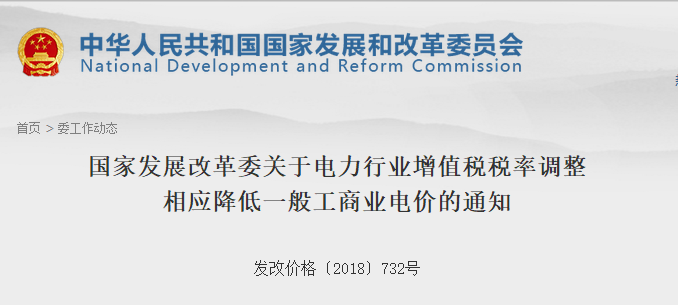 發(fā)改委:關(guān)于電力行業(yè)增值稅稅率調(diào)整相應(yīng)降低一般工商業(yè)電價的通知