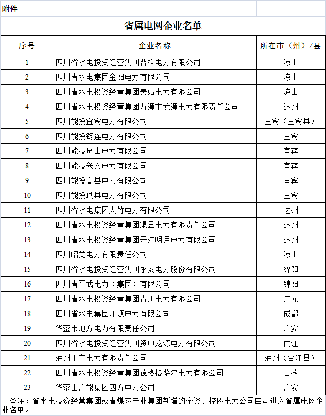近日四川省發(fā)改委發(fā)布了關(guān)于調(diào)整省屬電網(wǎng)電價(jià)管理權(quán)限有關(guān)事項(xiàng)的通知,通知要求省屬電網(wǎng)(目前為省水電投資經(jīng)營集團(tuán)全資、控股縣級電力公司,