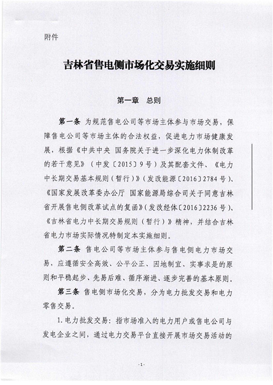 《吉林省售電側(cè)市場化交易實施細則》印發(fā)