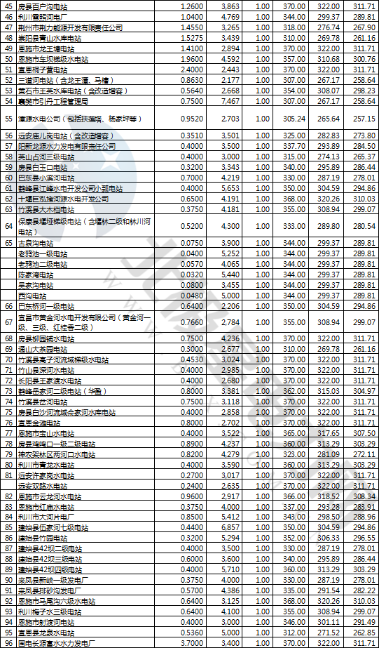 2.湖北省現(xiàn)行水電站上網(wǎng)電價表