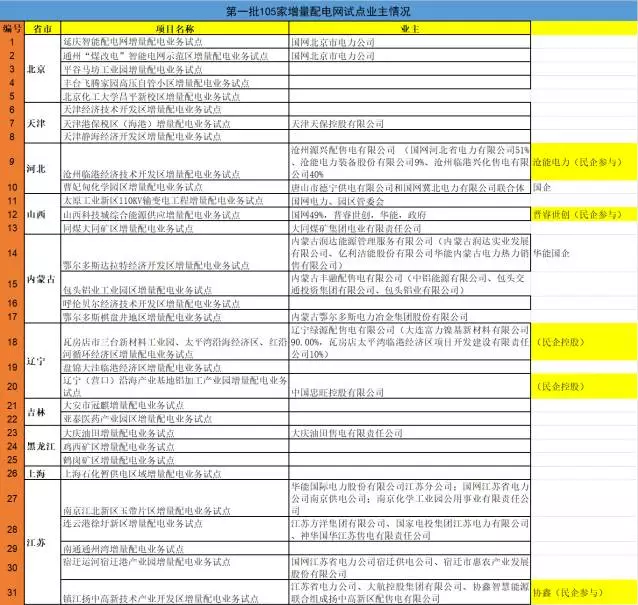 原標題:【史上最全版本】盤點全國有哪些民營企業(yè)參與了增量配網(wǎng)試點項目?