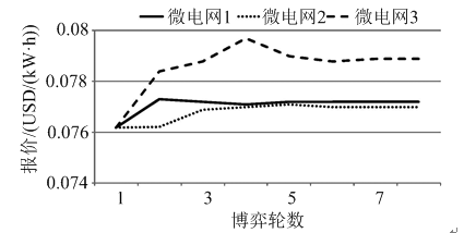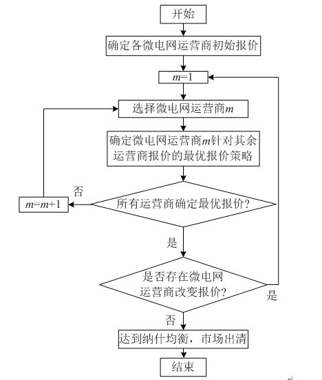 4)比較微電網(wǎng)運營商前后兩次的報價是否發(fā)生改變,若存在任一運營商的報價改變,則返回步驟2),直至所有運營商都不再改變報價。