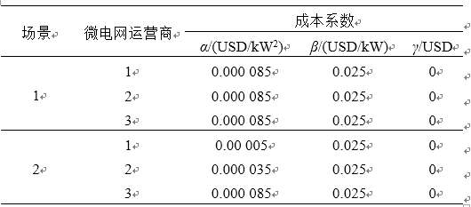 在圖1所示的電力市場中,微電網(wǎng)運營商的發(fā)電成本對其競價策略和收益水平都有著顯著的影響。因此,本文首先對不同運行成本下微電網(wǎng)運營商的競價策略和市場的運行進行分析,仿真場景如表1所示。