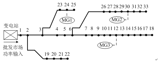 圖4 IEEE 33節(jié)點配電系統(tǒng)結(jié)構(gòu)