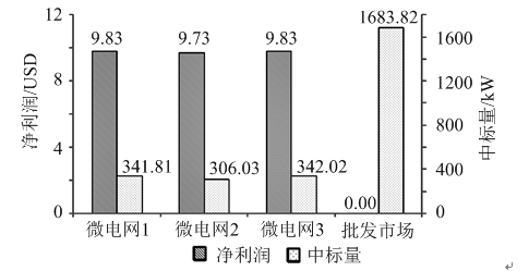 圖6 場景1微電網(wǎng)運營商凈利潤及中標量