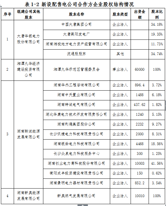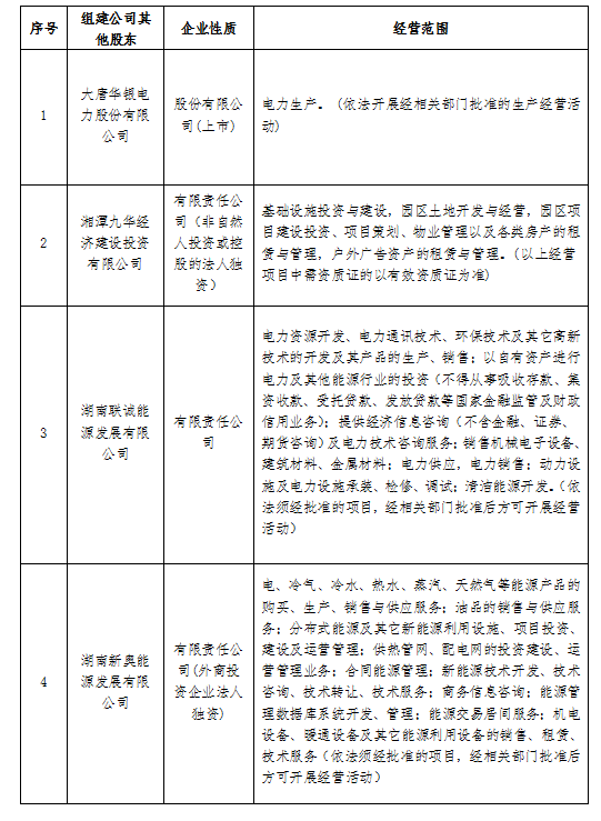 湘潭經(jīng)開區(qū)增量配電試點(diǎn)項(xiàng)目的意向投資方有:國網(wǎng)湖南省電力公司、大唐華銀電力股份有限公司、湘潭九華經(jīng)濟(jì)建設(shè)投資有限公司、湖南聯(lián)誠能源發(fā)展有限公司、湘潭新奧燃?xì)庥邢薰尽8鶕?jù)《中華人民共和國公司法》、《中華人民共和國合同法》和《湖南省增量配電網(wǎng)業(yè)務(wù)試點(diǎn)工作方案》的有關(guān)規(guī)定,本著互利、協(xié)商一致、共同發(fā)展的原則,五家公司共同出資設(shè)立配售電公司,該配售電公司為項(xiàng)目投資開發(fā)主體。