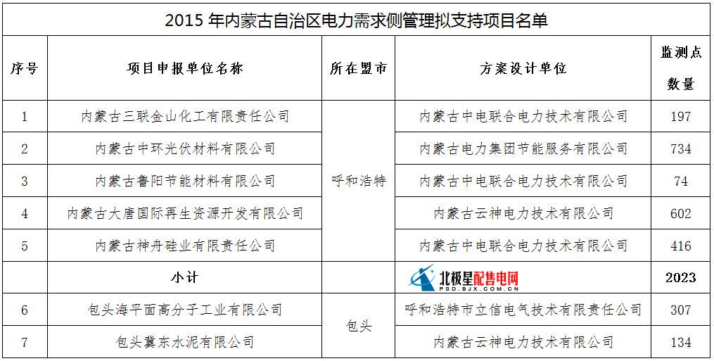 內(nèi)蒙古2015年度電力需求側(cè)管理專項資金項目公示(名單)