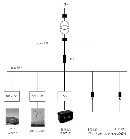圖4風(fēng)光儲(chǔ)微電網(wǎng)主接線(xiàn)示意圖