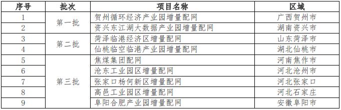 增量配電業(yè)務(wù)改革試點名單(第三批)