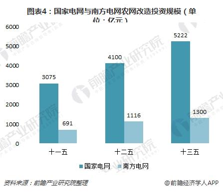 2016年,新一輪農(nóng)村電網(wǎng)改造升級(jí)工程開始實(shí)施,國(guó)家電網(wǎng)南方電網(wǎng)也正式啟動(dòng)了農(nóng)村電網(wǎng)改造工程,其中南方電網(wǎng)計(jì)劃在“十三五”期間投資1300億元用于農(nóng)網(wǎng)改造升級(jí),國(guó)家電網(wǎng)則計(jì)劃總投資5222億元,到2020年實(shí)現(xiàn)公司經(jīng)營(yíng)區(qū)內(nèi)農(nóng)村地區(qū)穩(wěn)定可靠的供電服務(wù)全覆蓋,“兩網(wǎng)”合計(jì)投資達(dá)6522億元。