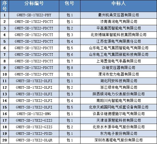 國(guó)網(wǎng)山西省電力公司2017年(第二次新增)配網(wǎng)設(shè)備協(xié)議庫(kù)存貨物招標(biāo)中標(biāo)結(jié)果(招標(biāo)編號(hào):GWXY-SX-17XZ2)