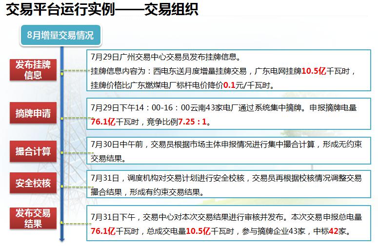 組織西電東送交易是廣州電力交易中心的重要職能。2016年1-8月,累計組織西電東送交易電量1281.41億千瓦時,同比增長6.1%,較年度計劃增送104.4億千瓦時。在完成西電東送年度計劃的基礎上,充分挖掘通道富余能力,通過競爭方式組織云南增送廣東省間市場化交易電量33.5億千瓦時,促進西部富余水電消納。3、5、6、7、8月份云南增送市場化交易落地價格較廣東燃煤標桿電價低7-10分/千瓦時,電費降幅累計3.2億元。降幅電費將按照廣東省政府有關部門制定的規(guī)則進行分配,全部用于補償廣東省內受影響發(fā)電企業(yè)。