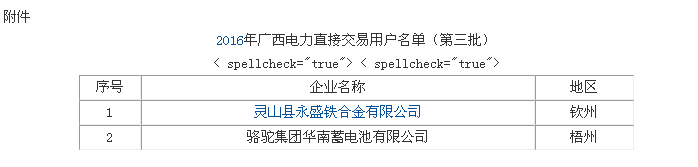 廣西關(guān)于2016年電力直接交易準入名單( 第三批)的公示