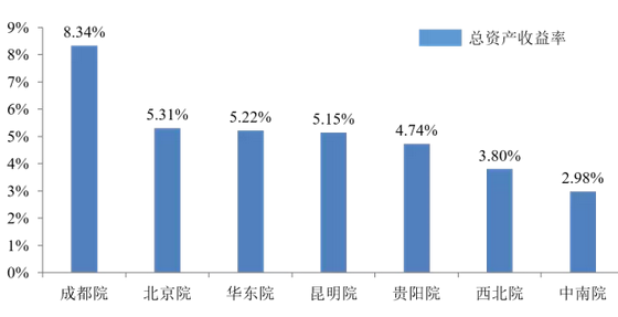 成都院總資產(chǎn)收益率最高,且負債少,說明成都院的經(jīng)營能力和競爭力都是很強的;