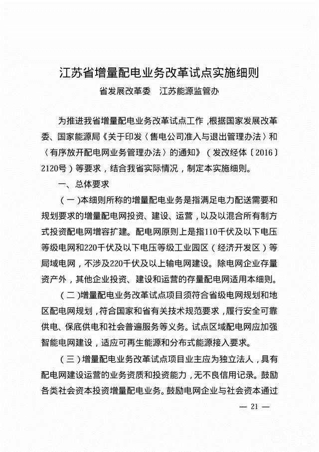 江蘇售電側改革試點實施細則、增量配電業(yè)務改革試點實施細則正式發(fā)布!