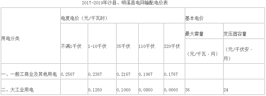 2017-2019年國網(wǎng)福建電力公司輸配電價公布