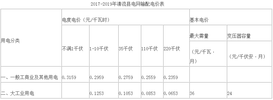 2.上表電價為基準(zhǔn)輸配電價,參與電力市場化交易的電力用戶電度輸配電價=基準(zhǔn)電度輸配電價+調(diào)整系數(shù),調(diào)整系數(shù)=燃煤機組標(biāo)桿上網(wǎng)電價-參與直接交易機組政府核定上網(wǎng)電價(含相應(yīng)超低排放電價,不含可再生能源電價補貼)。參與電力市場化交易的電力用戶按規(guī)定征收政府性基金及附加,政府性基金及附加的具體征收標(biāo)準(zhǔn)以現(xiàn)行目錄銷售電價表中征收標(biāo)準(zhǔn)為準(zhǔn)。其他電力用戶繼續(xù)執(zhí)行現(xiàn)行目錄銷售電價政策。
