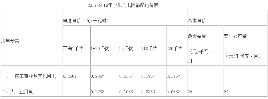 注:1.表中電價含增值稅、線損及交叉補貼,不含政府性基金和附加。