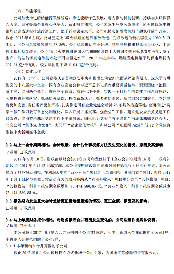 國(guó)電電力2017年半年度報(bào)告:凈利潤(rùn)16.932億元 同比減少53.83%(附報(bào)告)